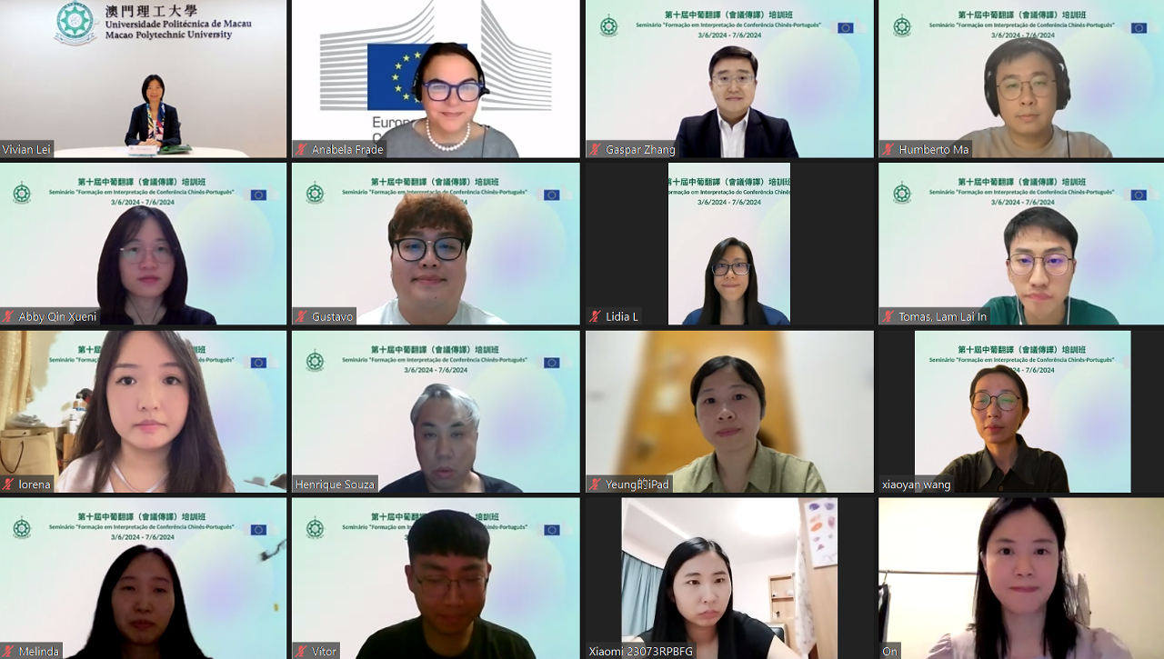 為拓展澳門中葡平台作用,澳門理工大學語言及翻譯學院與歐盟口譯總司合作舉辦第十屆中葡會議傳譯培訓班,由歐盟口譯總司專家與澳理大教師向來自澳門特別行政區政府行政公職局、衛生局、文化局、土地工務局、身份證明局、退休基金會,以及中國-葡語國家經貿合作論壇等部門之翻譯人員進行聯合授課。培訓內容涵蓋會議傳譯原理、交替傳譯、同聲傳譯等高級傳譯技術,反應熱烈。