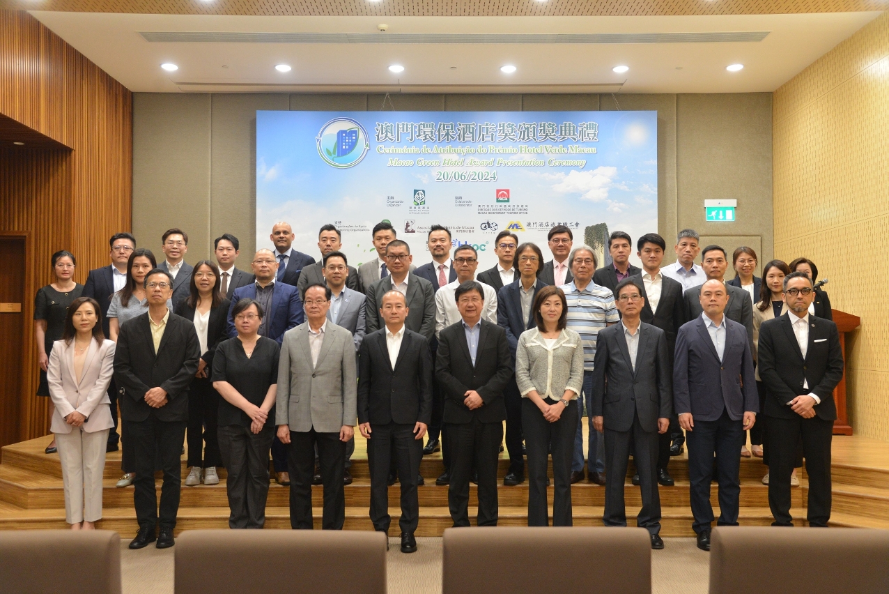 “澳門環保酒店奬"頒獎典禮今(20日)在環境保護局演講廳舉行,向15間獲“2023年澳門環保酒店獎”的酒店頒發獎項(得獎名單詳見附件),表揚業界為澳門環保工作的貢獻。
