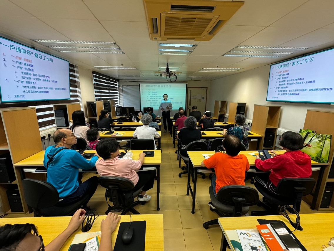 導師以輕鬆互動的方式,向參加者講解 “一戶通” 功能及服務,包括:我的通關、我的卡包(電子身份)、我的健康、在生證明、活動報名、生活繳費、預約櫃枱、登記及更改地址,以及身份證、回鄉證預約辦理服務等,參加者積極發問,導師熱心解答交流,氣氛熱烈。參加者認同 “一戶通” 讓市民輕鬆取得政府資訊,感受高效、便捷的電子公共服務。