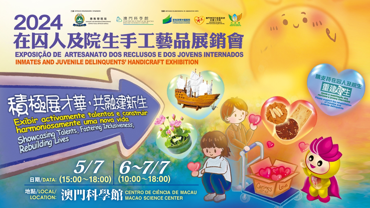 “2024在囚人及院生手工藝品展銷會”將於7月5日下午至7日,假澳門科學館會議廳舉行,懲教管理局希望透過展示在囚人及院生的學習成果,讓社會大眾感受其積極改過的決心,從而支持和接納他們重建新生。