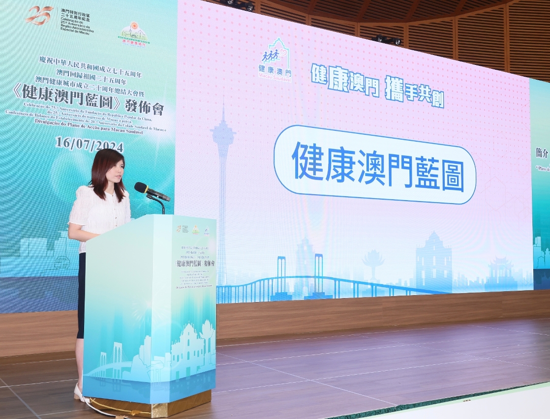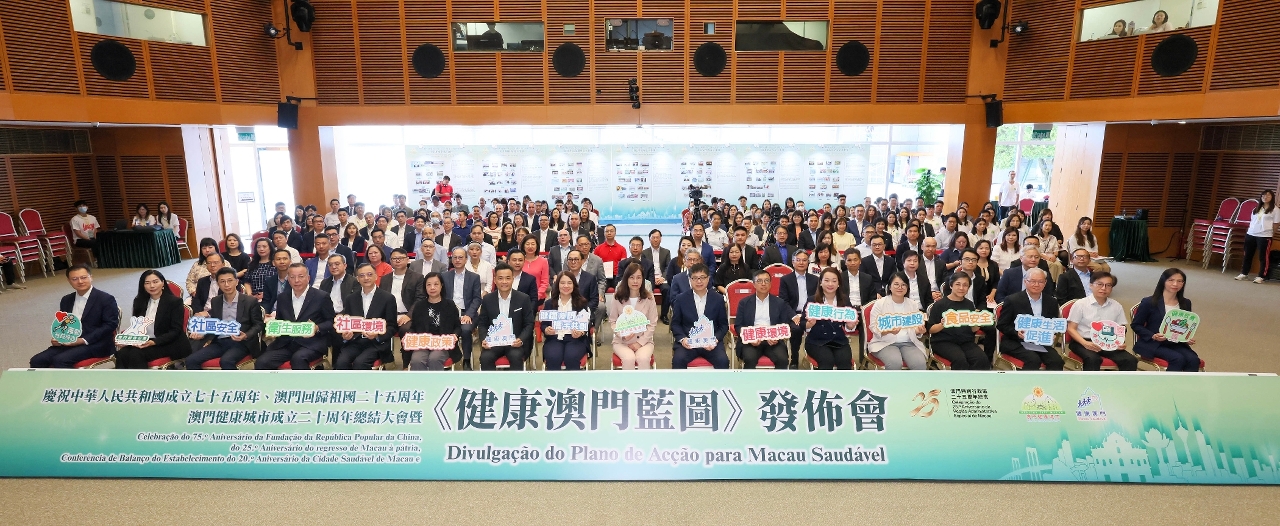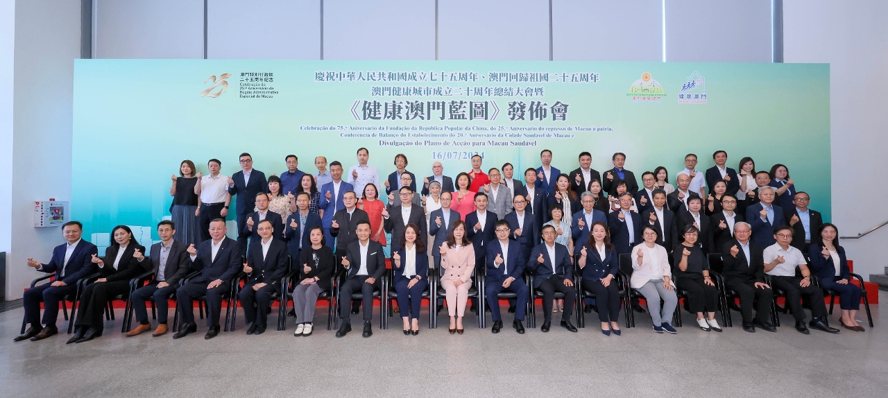 “慶祝中華人民共和國成立七十五周年、澳門回歸祖國二十五周年、澳門健康城市成立二十周年總結大會暨《健康澳門藍圖》發佈會”於今(16)日假澳門科學館舉行。健康城市委員會主席、社會文化司歐陽瑜司長,社會文化司司長辦公室何鈺珊主任、中央人民政府駐澳門特別行政區聯絡辦公室宣傳文化部萬速成部長、健康城市委員會成員、澳門政府部門、醫療機構、社團,以及“健康企業”計劃的企業代表等逾百位嘉賓出席。