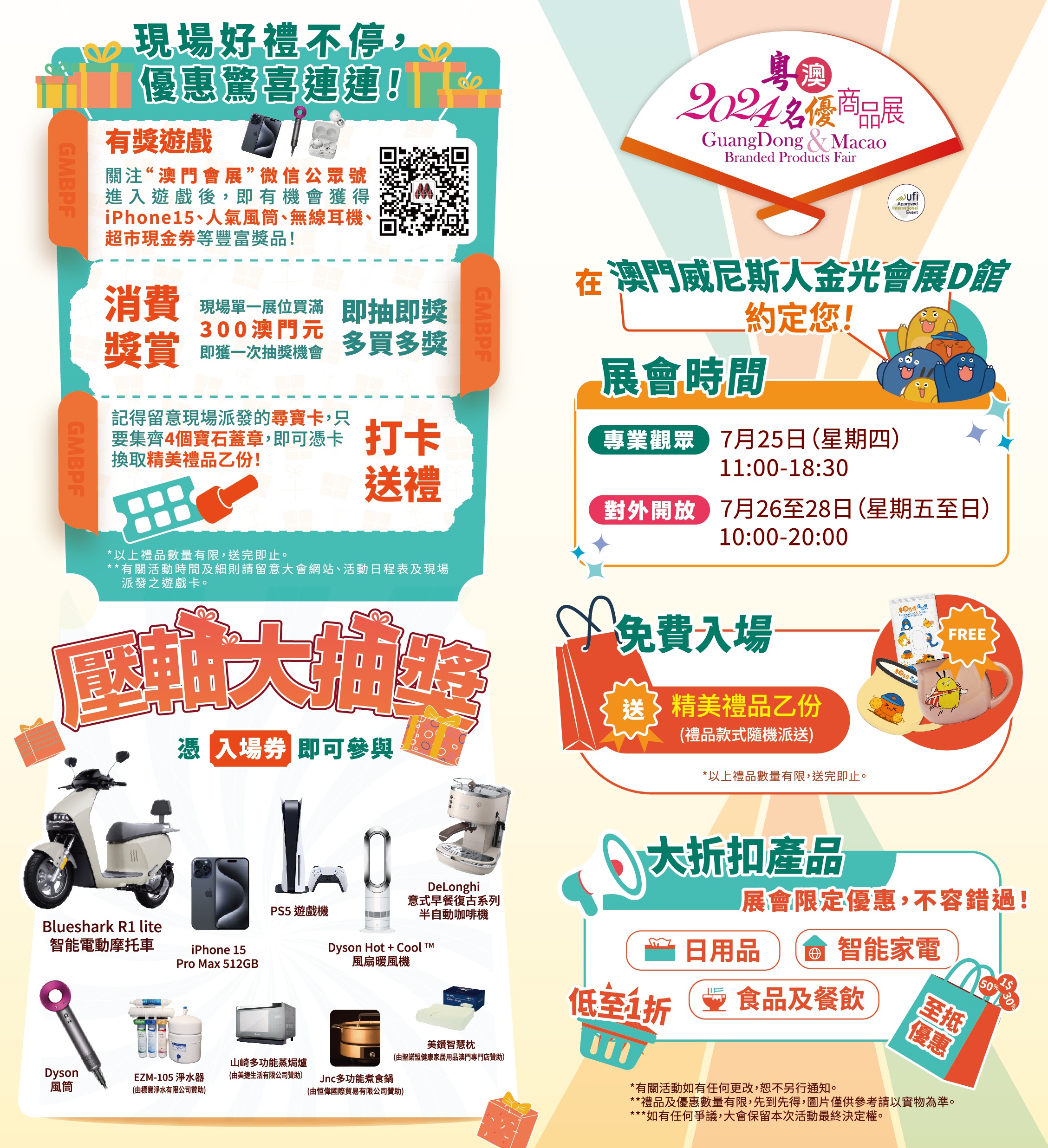為慶祝中華人民共和國成立75周年、澳門回歸祖國25周年,展會準備逾七萬五千份精美禮品贈予入場觀眾,同享雙慶之年喜悅。