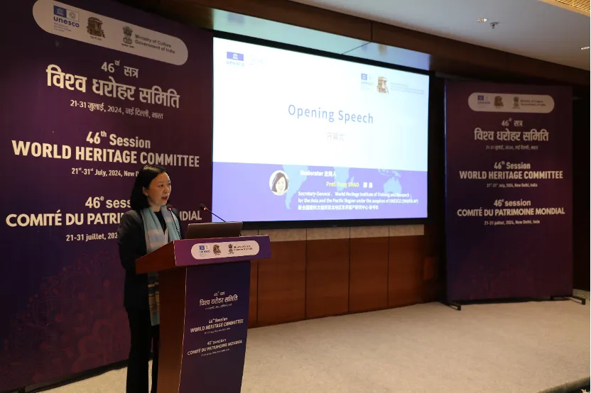聯合國教科文組織第46屆世界遺產大會正於印度新德里舉行。會議期間,於當地7月23日下午,聯合國教科文組織亞太區世界遺產培訓與研究中心在同場的Bharat Mandapam 會議中心MR 10廳舉辦 “科技、創意與賦能——面向未來的世界遺產教育” 主題邊會,各國重要嘉賓、世界遺產二類中心代表及部分AWHEIC獲獎代表受邀參加會議。會議由中心秘書長邵甬主持,並由中心副秘書長李昕代表中國聯合國教科文組織全國委員會秘書長秦昌威宣讀賀信,指出未來的遺產教育應該是教育、科技和文化的高度融合,這正是教科文組織使命所在。邊會現場揭曉了2024年《全球世界遺產教育創新案例獎(AWHEIC)》獲獎名單,共設 “卓越之星獎”、“探索之星獎” 以及 “未來之星獎” 各十項,當中,澳門基金會的 “澳門記憶” 文史網項目榮獲 “探索之星獎”。