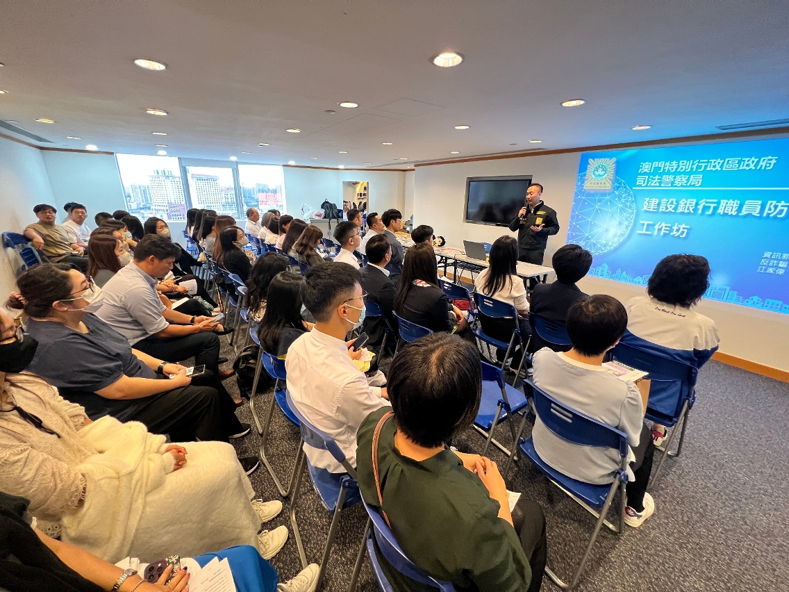 司警局分別於6月24日、6月26日及7月5日在司警局總部,以及中國建設銀行澳門分行、招商永隆銀行澳門分行舉辦防騙工作坊,由司警局反詐騙協調中心人員擔任主講,共113名本澳銀行工作人員出席。