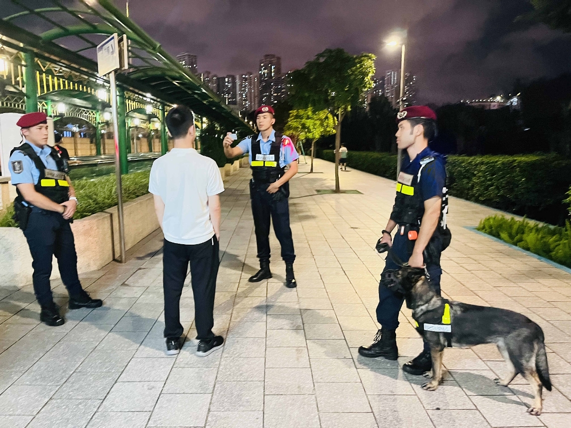 在警察總局統籌下,治安警察局於昨(1)日持續開展“雷霆2024”行動,以維護本澳良好治安環境。治安警察局轄下澳門警務廳、海島警務廳、交通廳、情報廳、特警隊及轄下警犬組共派出78名人員,分別巡查澳門各區多間賓館、網吧及酒吧,同時在澳門中區、北區、離島區及路氹城金光大道一帶加強截查可疑人士,並進行不定點查車行動,以預防及打擊各種不法行為和犯罪活動。