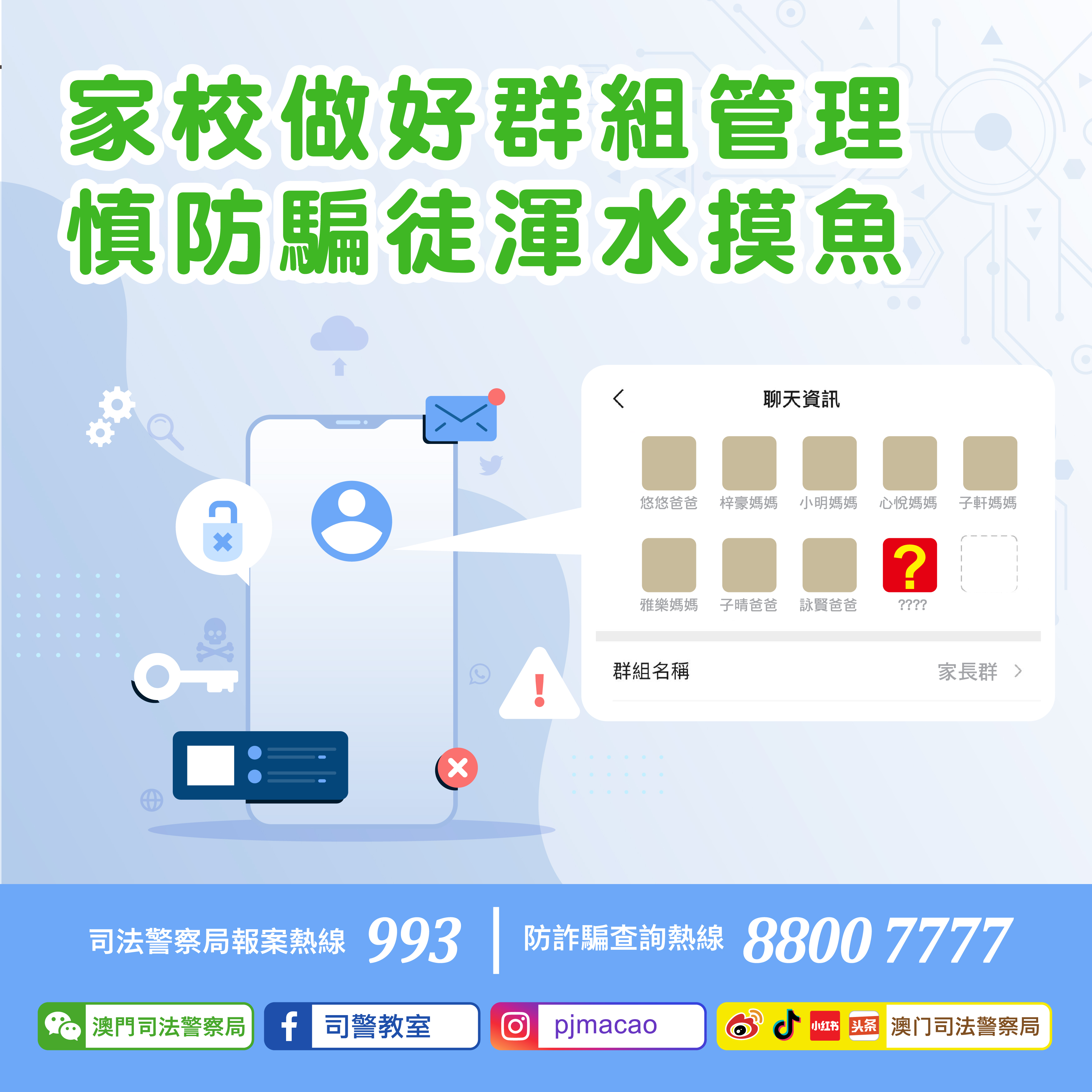 鑑於過往本澳亦曾發生類似案件,司警局籲請校方、家長和學生採取以下措施,加強家校聯絡群組的安全,勿讓不法之徒有機可乘: