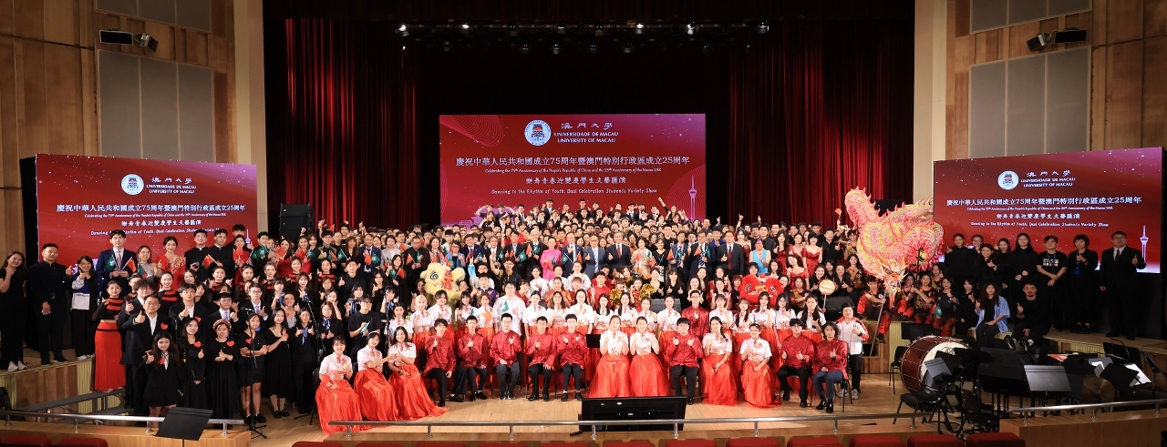 慶祝中華人民共和國成立75周年暨澳門特別行政區成立25周年—“樂舞青春”雙慶學生文藝匯演在澳門大學舉行。匯演由澳門大學主辦,邀請了北京大學、清華大學、浙江大學的學生來澳,與澳大學生一同作文藝演出,合共超過1,100人參與這場精彩的視聽盛宴。
