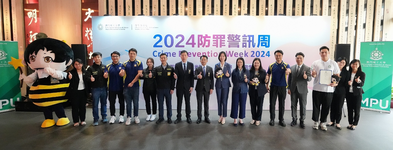 新學年伊始,司法警察局積極聯動教育界繼續推進“校園防騙疫苗計劃”各項行動,全面提升高等院校學生的防騙意識和能力。2024年9月3日,司警局蘇兆強副局長、資訊罪案調查處龍漢威處長、社區警務及公共關係處趙朱惠敏處長以及“防騙小精靈”應澳門理工大學的邀請,出席該校“防騙大使”委任儀式。