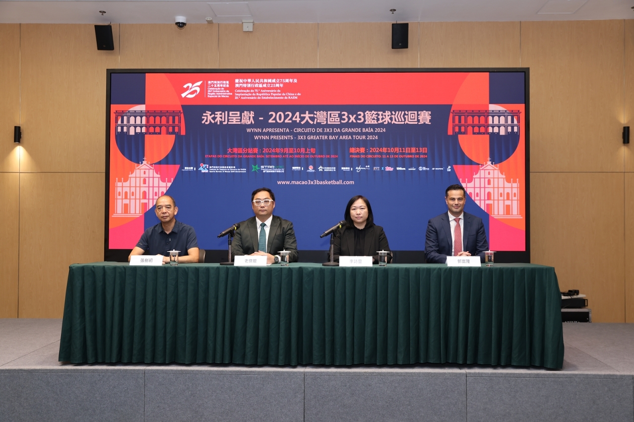由體育局及澳門星娛樂製作有限公司主辦,永利渡假村(澳門)股份有限公司贊助的 “永利呈獻-2024大灣區3×3籃球巡迴賽” 總決賽將於10月11至13日在本澳舉行,主辦單位今 (9)日舉行新聞發佈會公佈賽事詳情。