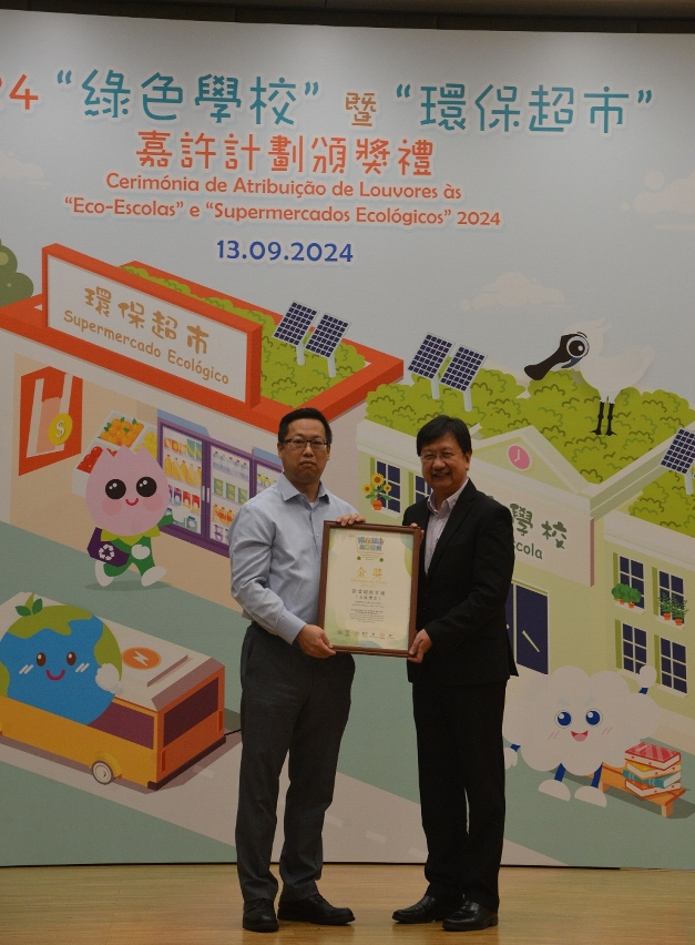 環境保護局今(9月13日)舉行2024“綠色學校”暨“環保超市”嘉許計劃頒獎禮,嘉許相關學校和機構對環保工作所作的貢獻,並響應國家“雙碳”目標,推動落實環保教育和管理,實踐減廢減塑、節能減排等措施。