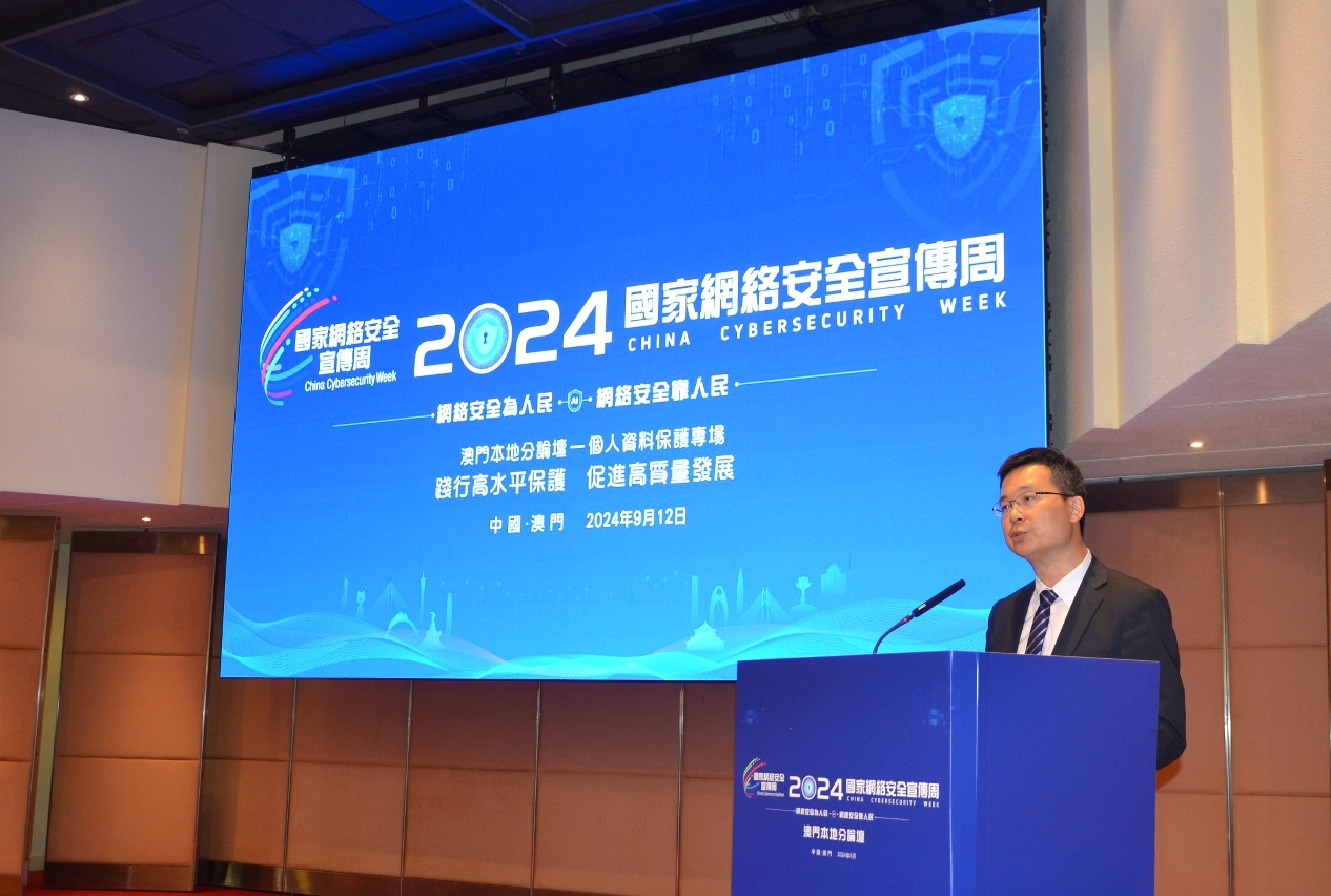 2024國家網絡安全宣傳周澳門本地分論壇 - 個人資料保護專場於9月12日下午在世貿中心五樓蓮花廳舉行,主題為“踐行高水平保護,促進高質量發展”。香港個人資料私隱專員公署鍾麗玲專員、司法警察局局長薛仲明、專家學者、關鍵基礎設施私人營運者、公共部門個人資料保護專責人員網絡的成員出席,共同探討網絡安全及個人資料保護的前沿議題。