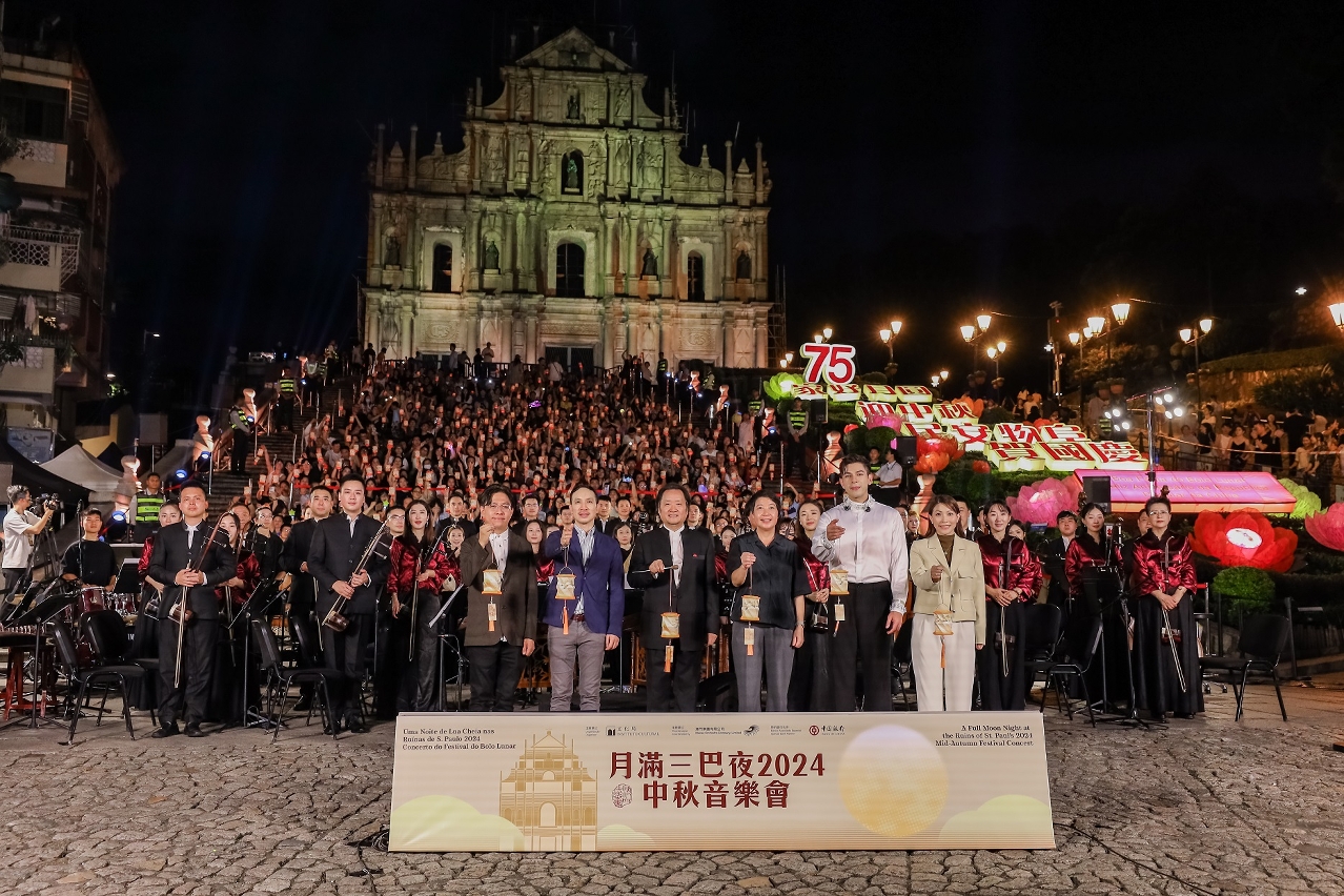 由文化局主辦、澳門樂團有限公司承辦的“月滿三巴夜2024”中秋音樂會,於今晚(17日)8時及9時在大三巴牌坊舉行,澳門中樂團在瑰麗的世遺景區呈獻多首經典樂曲,吸引市民遊客欣賞,歡度團圓佳節。