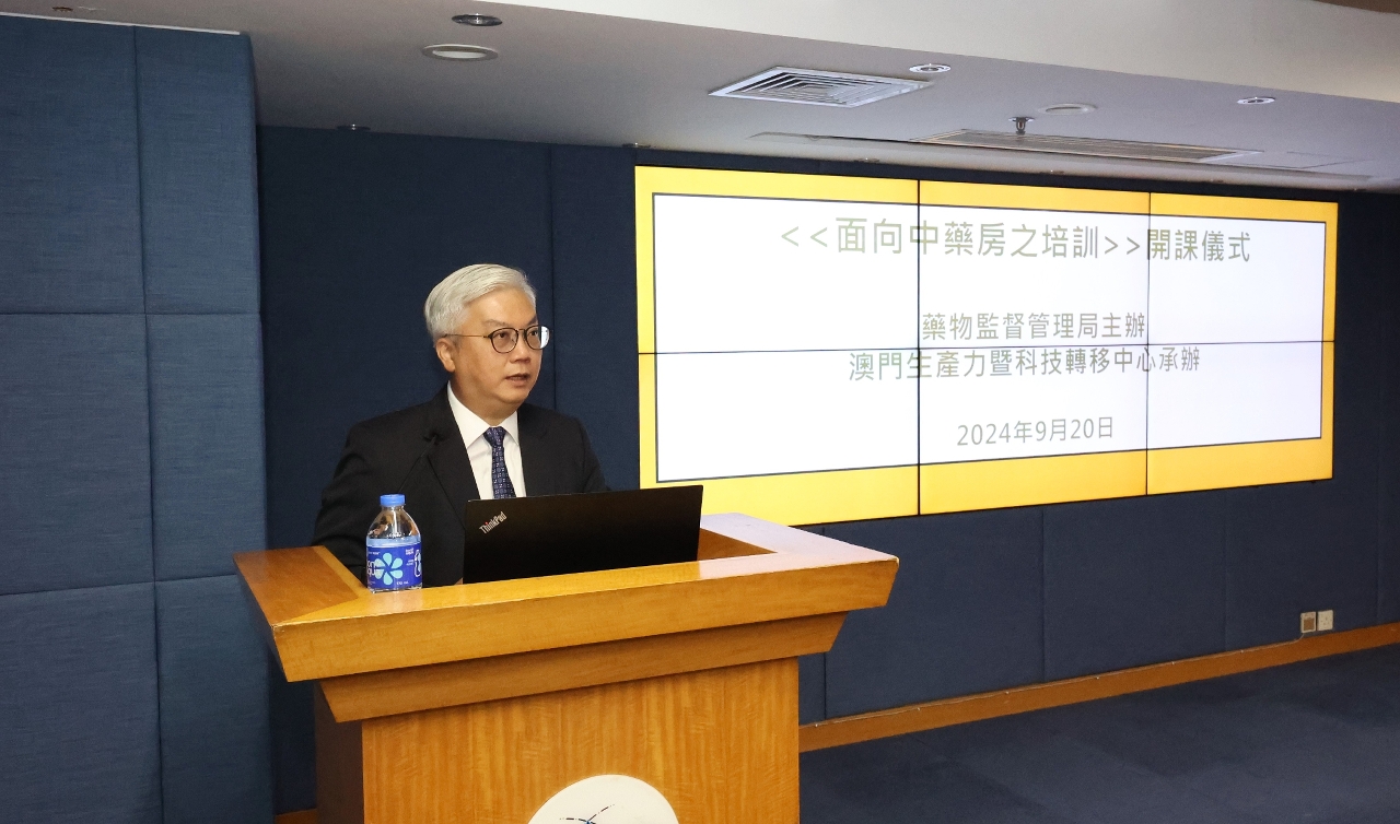 由藥物監督管理局主辦、澳門生產力暨科技轉移中心承辦的《面向中藥房的培訓課程》於本年9月20日及26日舉辦,今天舉行了簡單而隆重的開班儀式。