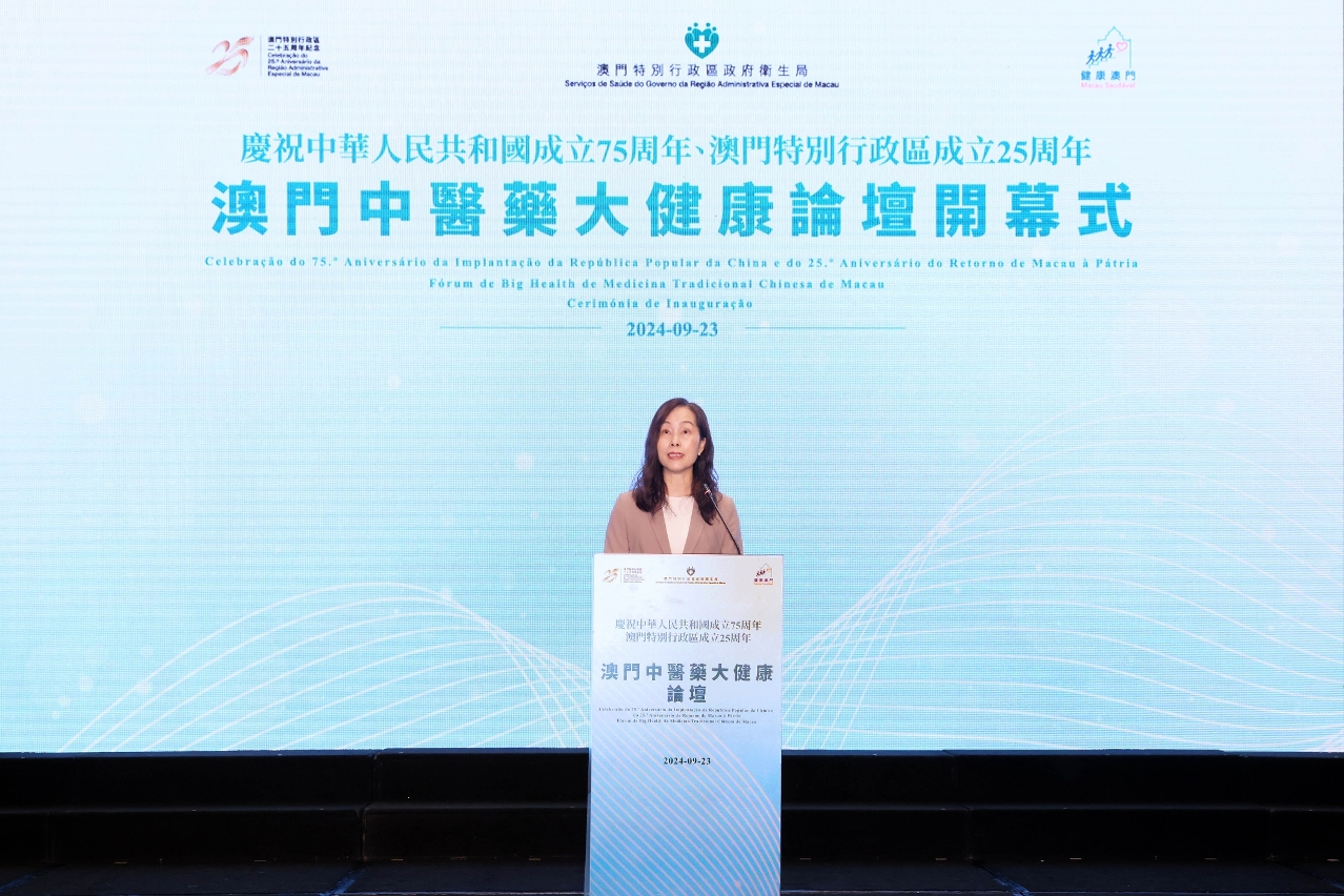 歐陽瑜司長在開幕式上致辭時表示,中醫藥是國家重要的非物質文化遺產,承載着中華民族的智慧。國家主席習近平在二十大報告中指出“促進中醫藥傳承創新發展。”第二十屆三中全會把“完善中醫藥傳承創新發展機制”放在推進中國式現代化的戰略位置,為引領中醫藥事業高品質發展,提供科學方向和堅實依據。澳門特區具有“一國兩制”的制度優勢,在國家各項惠澳政策的支持下,澳門特區政府把中醫藥大健康等作爲重點產業板塊,逐步建成“澳門平台、國際資源、橫琴空間、成果共享”的澳琴聯動發展新模式,爲澳琴中醫藥大健康產業的高品質發展,注入了新動能,催生發展新質生產力。她續指出,特區政府一直致力於中醫文化傳承、人才培養和國際交流等工作,加快建立中醫人才梯隊,不斷提升服務質量。同時,持續發揮世界衛生組織傳統醫藥合作中心(澳門)平台作用,爲73個國家,尤其是葡語國家及“一帶一路”國家的衛生官員及澳門特區的中醫藥從業人員,合共約2,800人次提供專業培訓;充分發揮澳門特區作為中葡合作的紐帶和橋頭堡的作用,不斷增强澳門在世界傳統醫學領域的影響力。