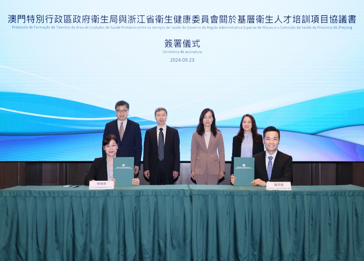 此外,在歐陽瑜司長、何鈺珊主任、王志勇副局長及萬速成部長見證下,羅奕龍局長分別與浙江省衛生健康委員會徐旭卿副主任共同簽署了《澳門特別行政區政府衛生局與浙江省衛生健康委員會關於基層衛生人才培訓項目協議書》,與四川省衛生健康委員張峰副主任共同簽署了《澳門特別行政區政府衛生局與四川省衛生健康委員會醫療衛生合作協議》。通過上述協議書及合作協議,將進一步深化衛生局與兩省的交流合作,包括傳染病和腫瘤等疾病防控、專科和社區醫療、中醫發展、人才交流和培養等方面,共同推動本澳、浙江省及四川省的醫療衛生健康事業發展。