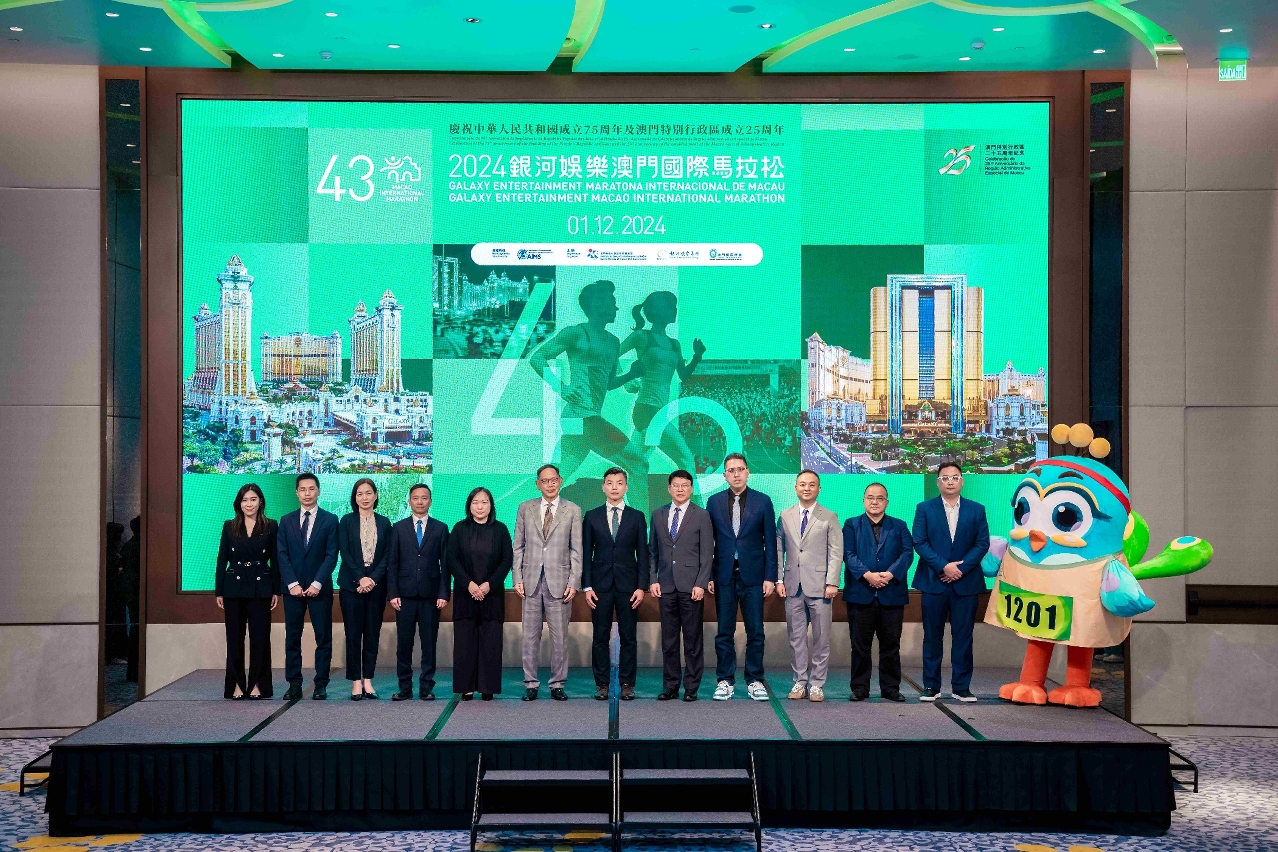 由體育局、銀河娛樂集團及澳門田徑總會主辦的「慶祝中華人民共和國成立75周年及澳門特別行政區成立25周年 - 2024銀河娛樂澳門國際馬拉松」將於本年12月1日(周日)舉行,賽事組委會於今(25)日舉行新聞發佈會公佈賽事詳情及報名安排。出席嘉賓包括體育局局長張子軒、銀河娛樂集團董事程裕昇、澳門田徑總會理事長陳步倩等。