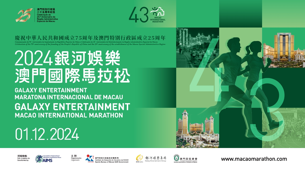 • 「慶祝中華人民共和國成立75周年及澳門特別行政區成立25周年 - 2024銀河娛樂澳門國際馬拉松」將於12月1日舉行