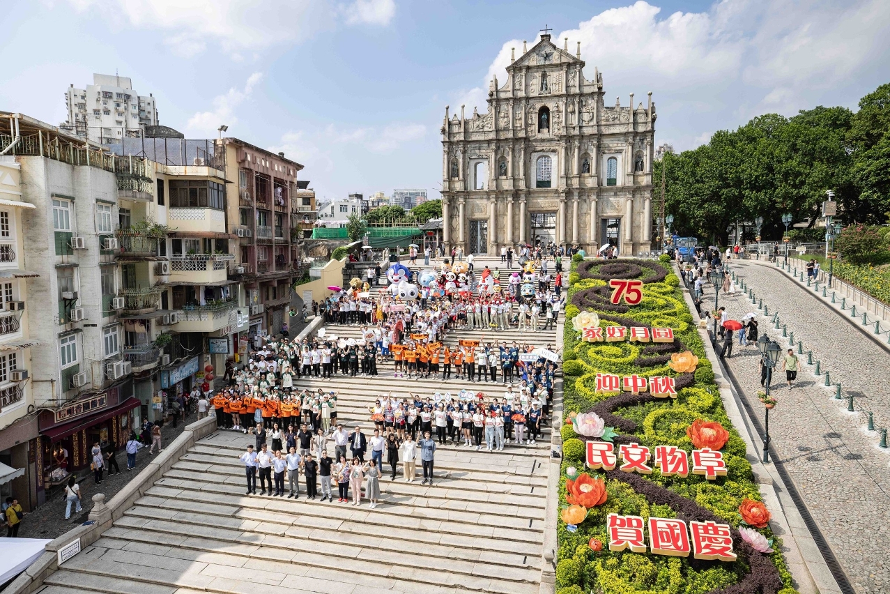 • 托盤比賽參賽者於大三巴牌坊排成數字“25”大合照