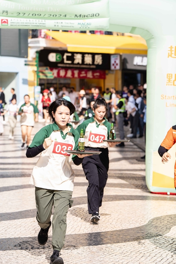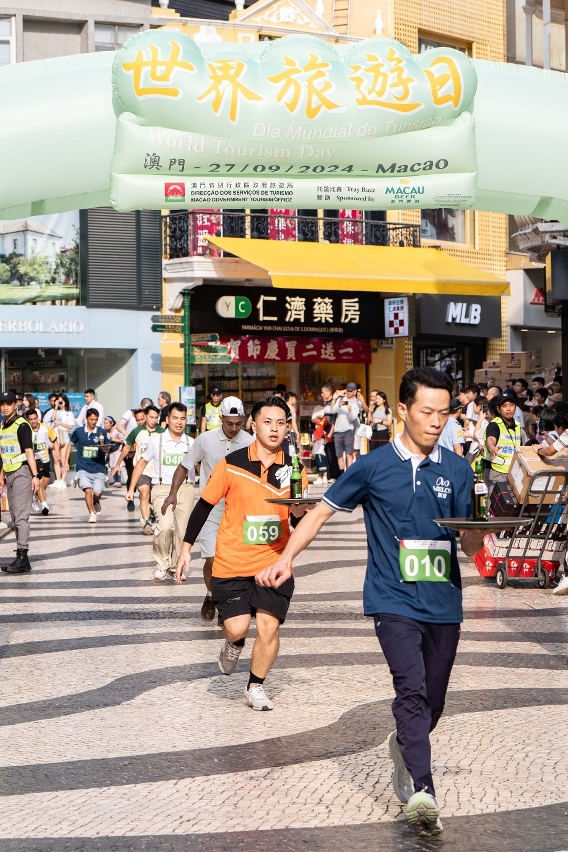 各參賽者手持承載一瓶“澳門啤酒”的托盤從大三巴牌坊出發,穿梭“澳門歷史城區”街道,務求盡快將啤酒安全送達終點議事亭前地,過程緊張刺激,沿途吸引旅客和居民駐足拍照,替參賽者打氣,展現澳門的旅遊活力與魅力。