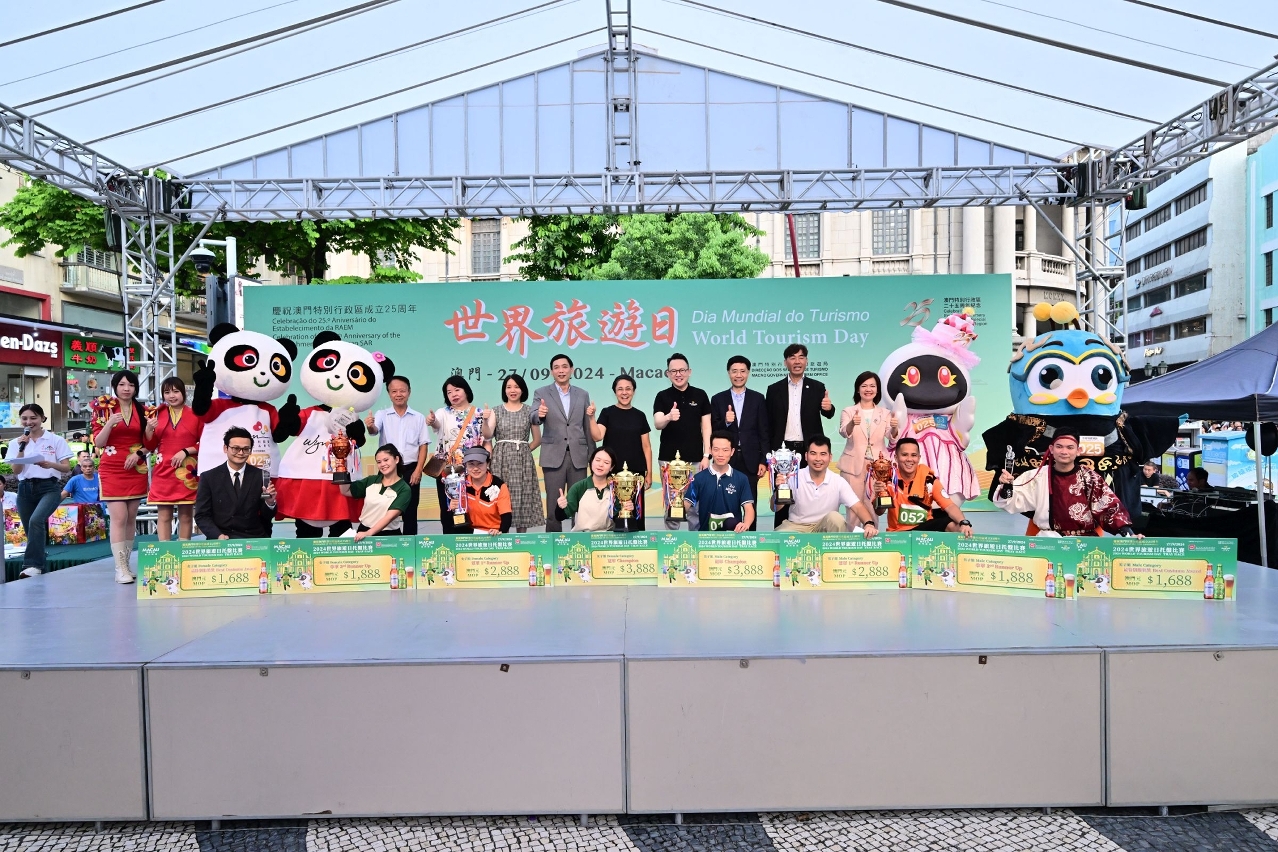 每年9月27日為“世界旅遊日”。旅遊局秉持傳統歡迎幸運旅客,下午舉辦慶祝澳門特別行政區成立25周年 2024世界旅遊日托盤比賽,與居民和旅客一同響應“世界旅遊日”,現場氣氛熱鬧,展現世界旅遊休閒中心的活力。