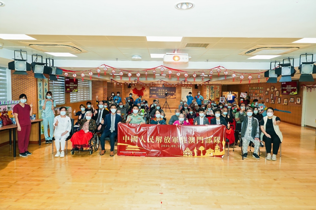 為感謝長者對本澳社會的貢獻,傳承敬老崇孝的社會價值,中國人民解放軍駐澳門部隊政治工作部劉陳長副主任與官兵代表,在澳門特別行政區政府社會工作局韓衛局長的陪同下,於9月30日下午到工聯九澳護養院慰問長者。