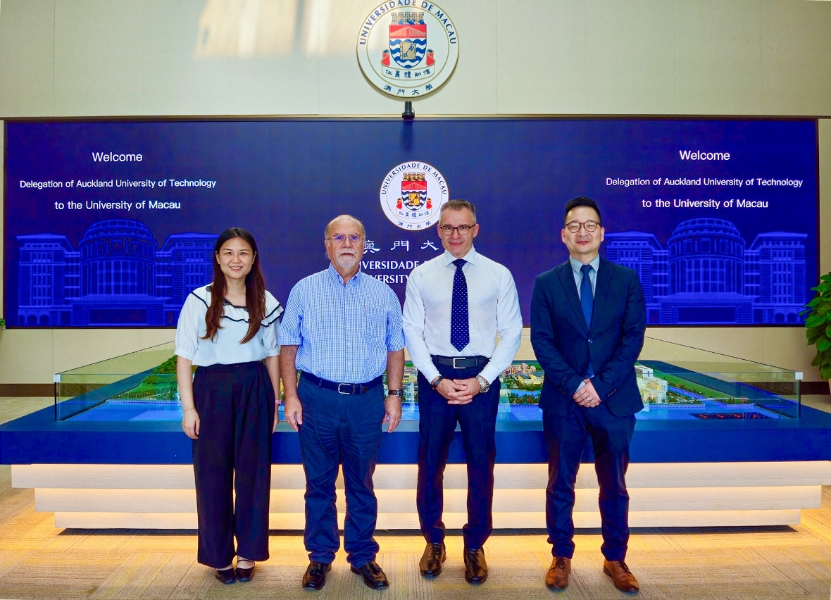 新西蘭奧克蘭理工大學副校長Guy Littlefair今(14)日率代表團訪問澳門大學,獲副校長馬許願(Rui Martins)熱情接待。雙方就加強兩校合作展開深入討論。