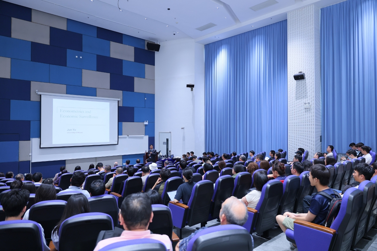 講座上,余俊解釋了投機泡沫的重要性,強調計量經濟學工具在經濟監測中的關鍵作用,並展示了這些工具在識別和管理金融泡沫方面的實際應用。他介紹了遞歸方法、單位根檢驗等計量經濟學技術,並通過各種數據集的泡沫檢測方法,證明這些方法在檢測泡沫方面的有效性。余俊亦分享了應對更複雜泡沫情景的最新方法論進展,以識別和防止金融危機的發生。在問答及交流環節,余俊與參與者交流互動,討論氣氛熱烈。