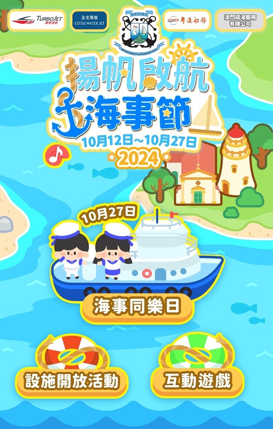 由海事及水務局主辦,信德中旅船務管理有限公司、金光渡輪有限公司、粵通船務有限公司和澳門疏濬服務有限公司協辦的“揚帆啟航海事節2024”於上月圓滿舉行。今次活動設有終極大抽奬,得奬名單已在海事及水務局網頁www.marine.gov.mo公佈。