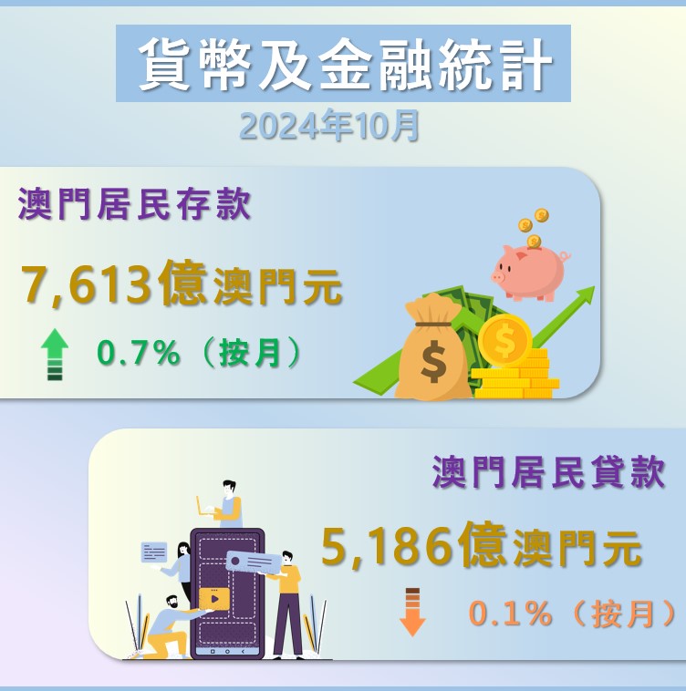 澳門金融管理局今(3)日發佈的統計顯示,10月的廣義貨幣供應量持續上升。與此同時,居民存款按月增加,居民貸款則錄得跌幅。