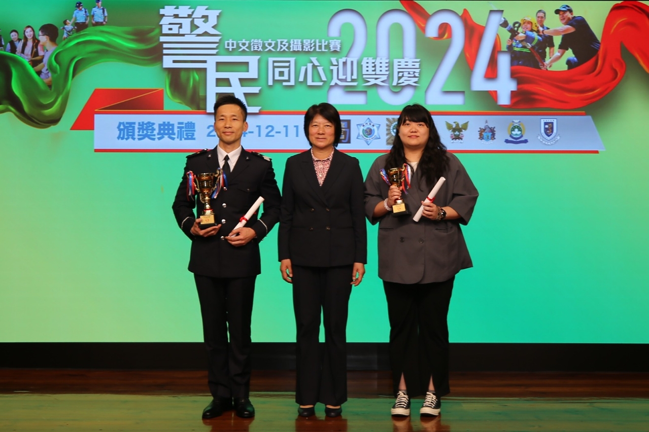 12月11日,由澳門保安部隊及保安部門合辦的“警民同心迎雙慶”中文徵文及攝影比賽,在澳門保安部隊高等學校禮堂舉行頒奬典禮。邀請到澳門保安部隊及保安部門的領導層、賽事評委、各組別的得獎者,以及高等院校和中學代表約130人出席,共同參與這項舉辦至第十年的建設警隊文化活動。