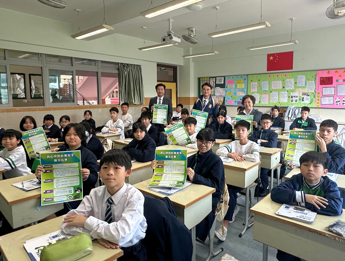 由澳門特別行政區政府與中央人民政府駐澳門特別行政區聯絡辦公室聯合舉辦的“我心中的社會安全”徵文及短視頻比賽現正接受報名,司法警察局積極派員走訪本澳高等院校和中學開展相關宣傳工作,鼓勵學生踴躍參與。