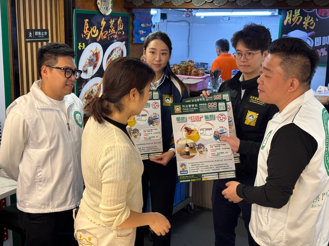 司警局聯同澳門餐飲行業協會入區宣傳 加強商戶防騙意識