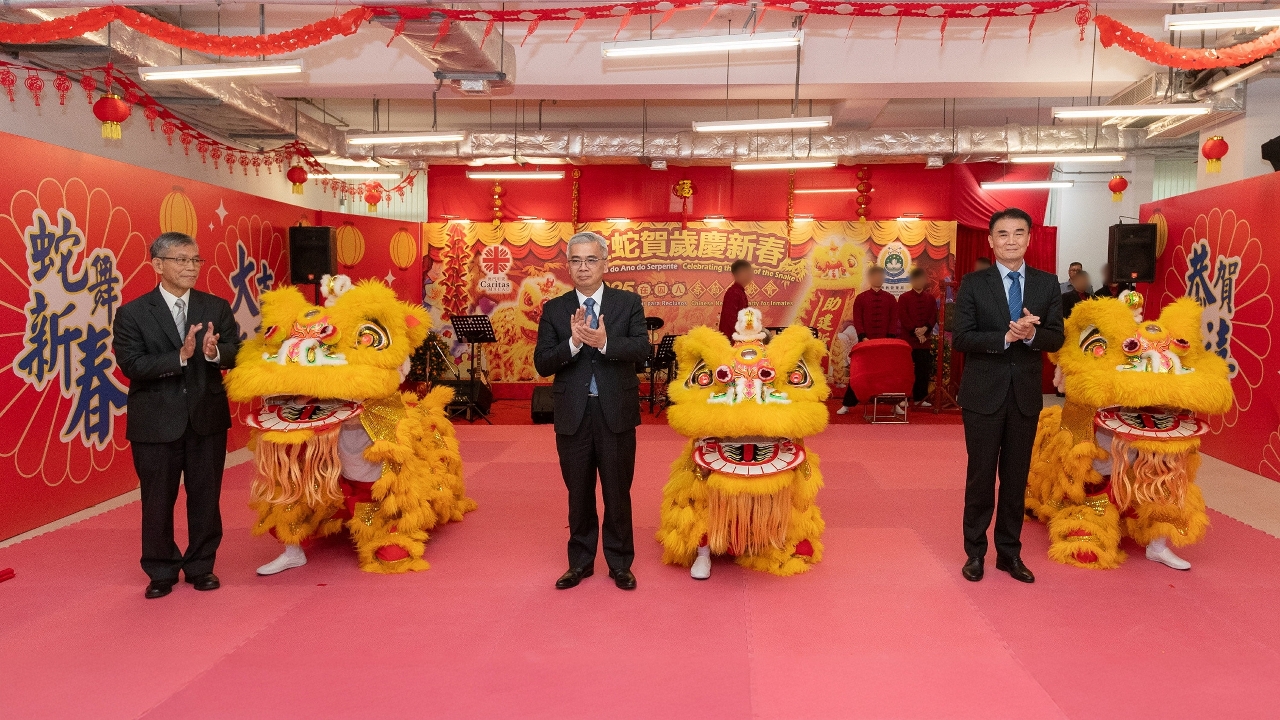 首場春節聯歡會在1月15日上午舉行,邀請多個政府部門及社服機構代表出席,並由保安司司長黃少澤、懲教管理局局長程况明及澳門明愛總幹事潘志明共同主持醒獅點睛儀式。隨着鑼鼓聲響起,春節聯歡會正式拉開序幕,由在囚人演出的節目輪番登場,包括舞獅、多國語言大合唱、旗舞、中國武術和傘舞,以及獻唱自創歌曲等表演。豐富精彩的表演,充分展示了在囚人的才藝,獲得了全場熱烈的掌聲。最後,聯歡會在溫馨歡樂的大合唱中圓滿結束。