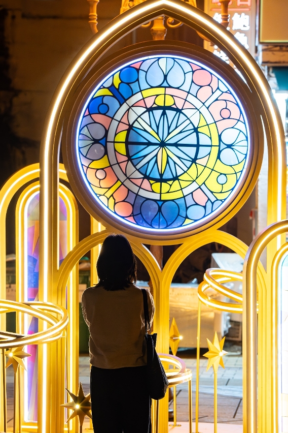 “星環流光”:設在市亭前地的燈飾裝置利用多重星環融入具教堂風格的元素,透過柔和燈光映襯夢幻氛圍。