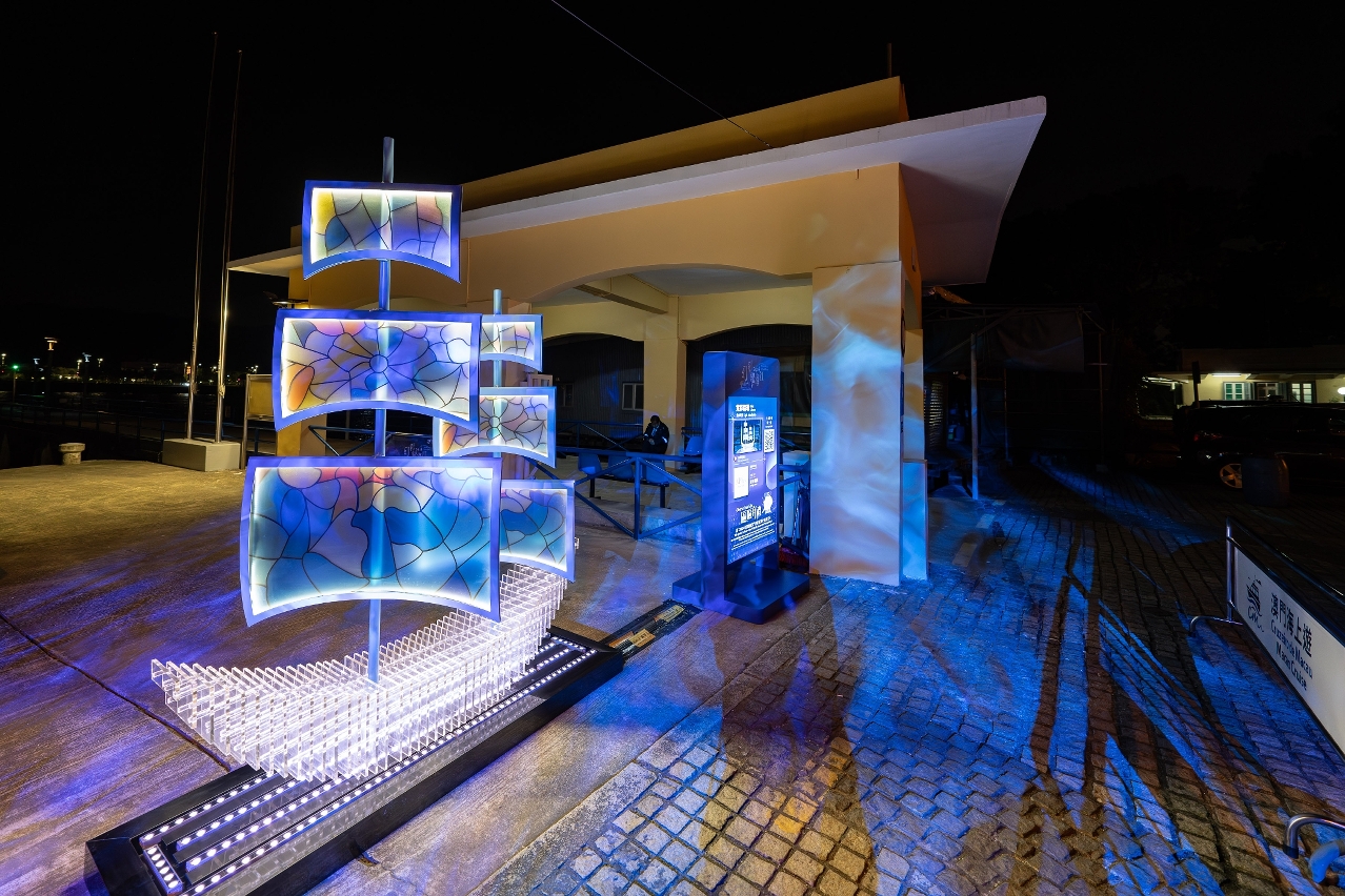 “霓彩路環”:在路環碼頭旁的燈飾裝置如同海上搖曳的船,帶領參觀者探索充滿色彩與希望的漁港夢境。