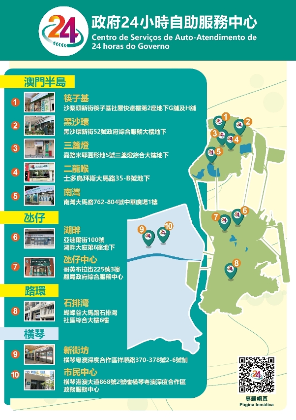 特區政府近年先後推出“一戶通”和“商社通”等電子服務平台,讓市民可不受地域限制,隨時線上辦理各類公共服務。同時,為滿足市民、商企和社團多樣化的服務需求,特區政府拓展線上線下協同的服務辦理模式,透過設立政府24小時自助服務中心,向市民提供全時段、多領域的自助便捷服務。目前,全澳共有8個政府24小時自助服務中心,另於橫琴政務服務中心設有澳門政務自助服務專區與“澳門新街坊”的澳門政務24小時自助服務中心,方便身處橫琴的澳門居民跨境辦事。
