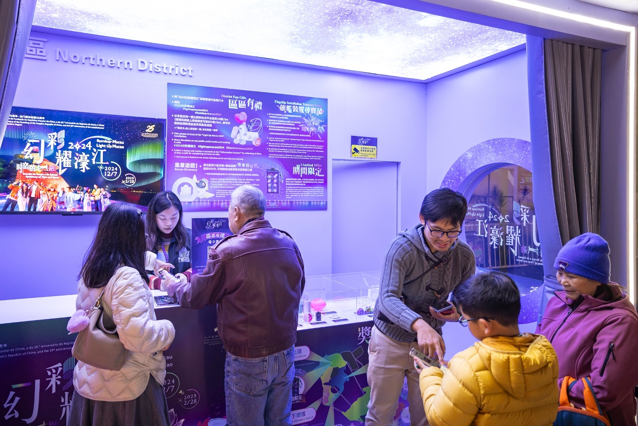 旅遊局主辦的“2024幻彩耀濠江”由2024年12月7日至2025年2月28日舉行,以“時空的共融”為主題,由海外、內地及港澳的藝術家和國際團隊通過旗艦裝置、藝術裝置、燈飾裝置、互動裝置及光雕表演等形式,精心打造一場穿越時空的光影盛宴,促進社區旅遊及夜間經濟,持續豐富澳門“世界旅遊休閒中心”內涵。