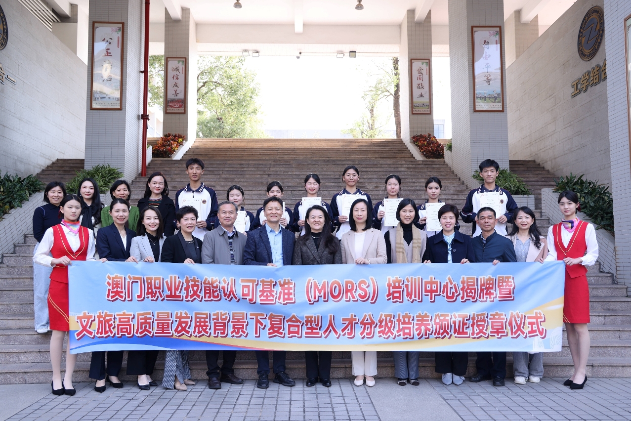 2025年2月24日,澳門旅遊大學與珠海市第一中等職業學校攜手迎來重要里程碑——內地首個覆蓋多工種的“澳門職業技能認可基準(MORS)培訓中心”正式揭牌。該中心的設立標誌著珠澳職業教育合作邁入新階段,為粵港澳大灣區旅遊業人才標準化培養注入新動能。