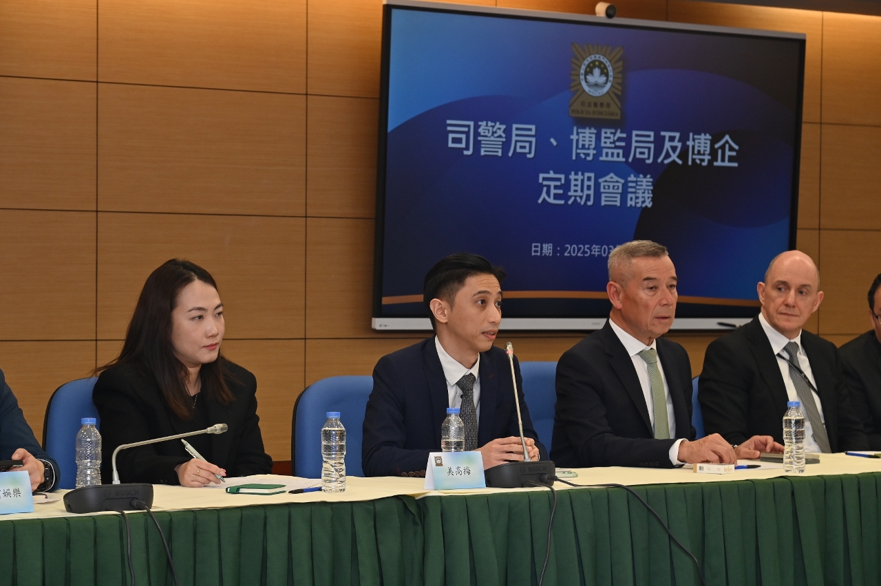 司法警察局聯同博彩監察協調局與六間博企保安部門舉行定期工作會議,就娛樂場保安協作機制、犯罪趨勢分析及智慧監管應用等議題深入交流,進一步強化三方合作,以促進澳門博彩業持續健康發展。