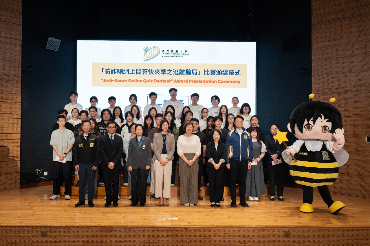 澳門旅遊大學積極響應司法警察局與教育及青年發展局合作推出的“校園防騙疫苗計劃”,致力在校園宣傳防騙資訊,提升學生反詐意識。於3月中透過線上形式推出“防詐騙網上問答快夾準之逃離騙局”比賽,吸引455名學生踴躍參與,活動同期成功選拔50名學生擔任首屆“校園防騙大使”,並於2025年4月8日順利舉行比賽頒獎及就職儀式。