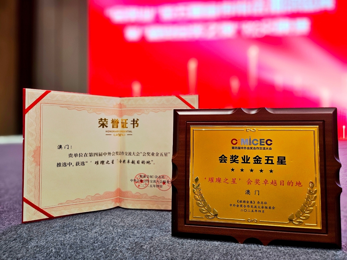 根據評選結果,澳門獲選“璀璨之星”會獎卓越目的地。由澳門招商投資促進局主席余雨生代表領獎。