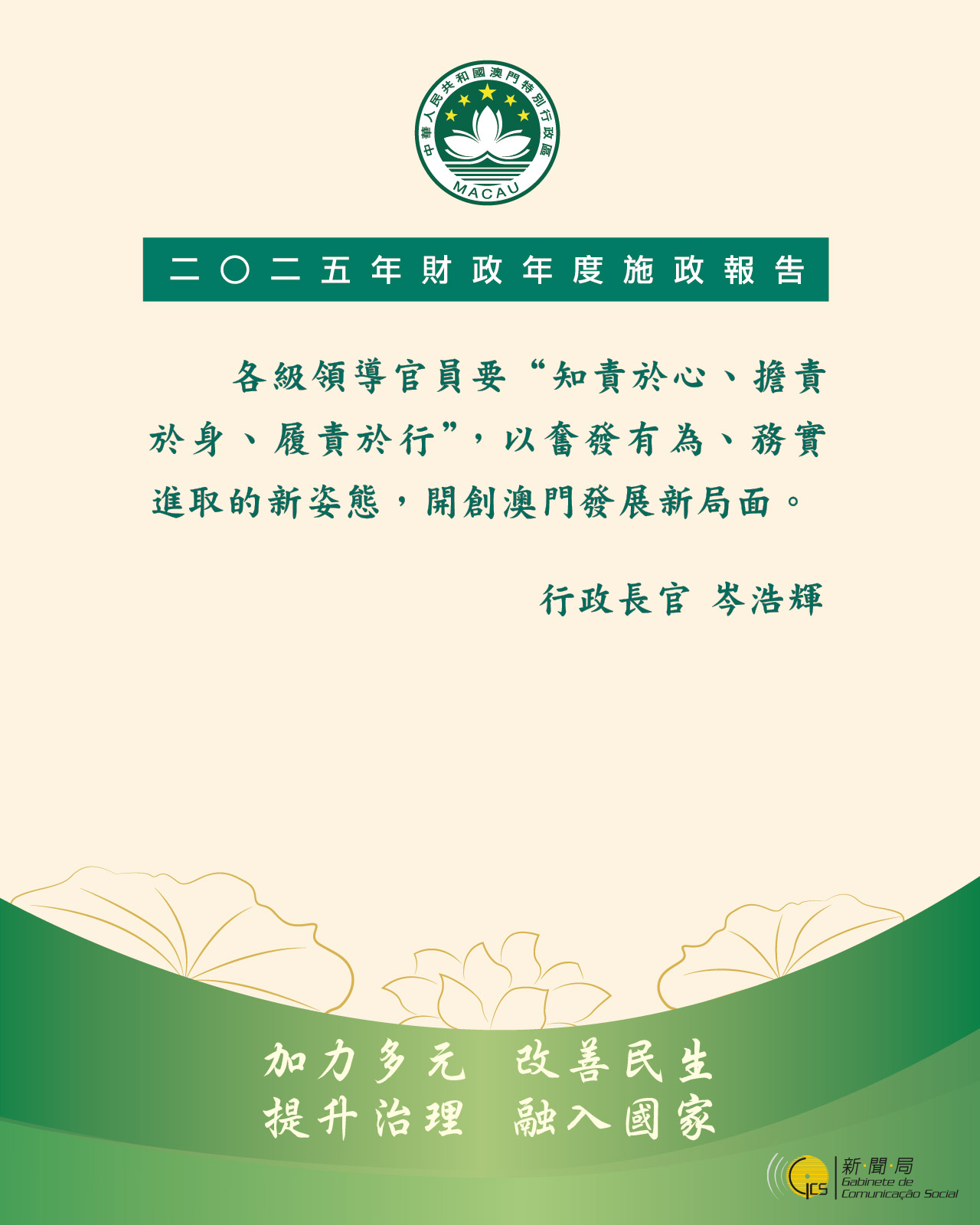 二〇二五年財政年度施政報告---加強統籌協調機制,開創特區發展新局面