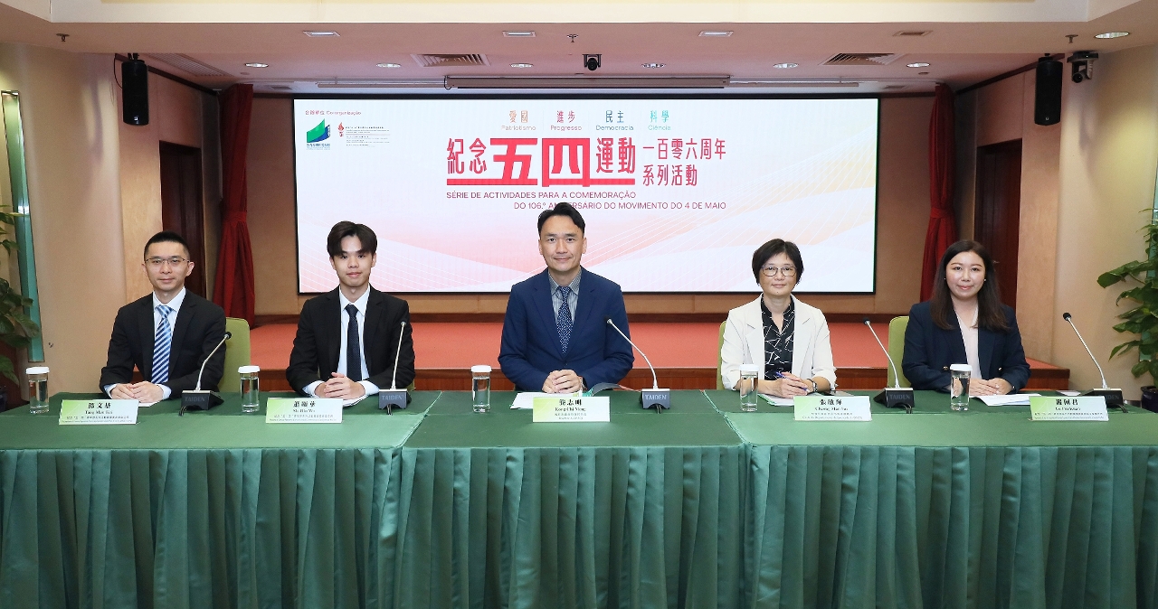 紀念“五四運動”106周年系列活動——五四青年論壇於同日舉行,將邀請不同專家學者及行業人士探討“五四”傳承與創新過程中澳門青年的使命擔當與未來發展。此外,還有多場五四精神走進校園講座、明信片設計及填色比賽、線上問答遊戲、赴大灣區城巿及合作區的交流考察活動、職涯與科學探索活動等。期望青年學生以行動回應習近平主席對廣大青年的寄語,傳承“愛國、進步、民主、科學”的五四精神,在推進強國建設、民族復興偉業中展現青春作為、彰顯青春風采、貢獻青春力量,做有理想、敢擔當、能吃苦、肯奮鬥的新時代好青年,成為建設澳門、建設國家的有生力量。