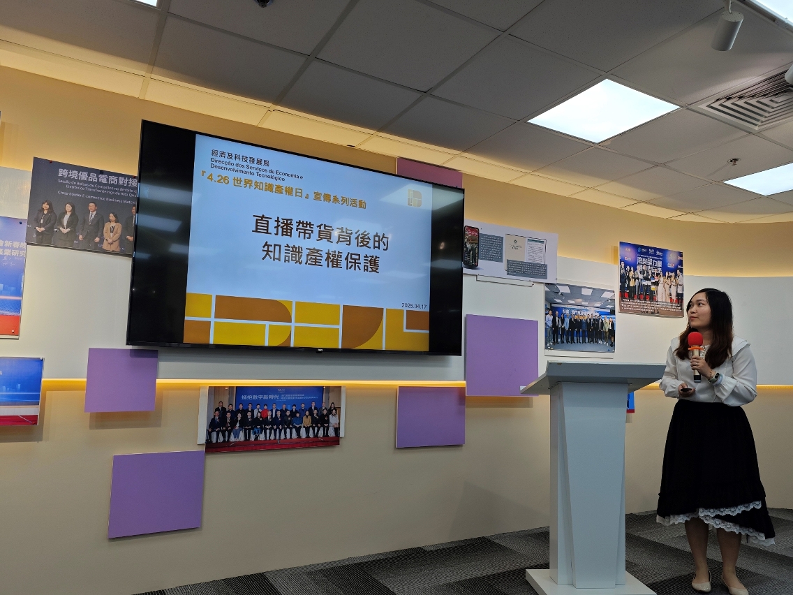 配合活動主題,經科局日前分別與澳門工商聯會以“營商有道:知識產權保護”及澳門直播協會以“直播帶貨背後的知識產權保護”為主題,合辦了兩場知識產權法律專場講座,吸引了來自不同範疇的澳門工商界及直播業界代表參加。