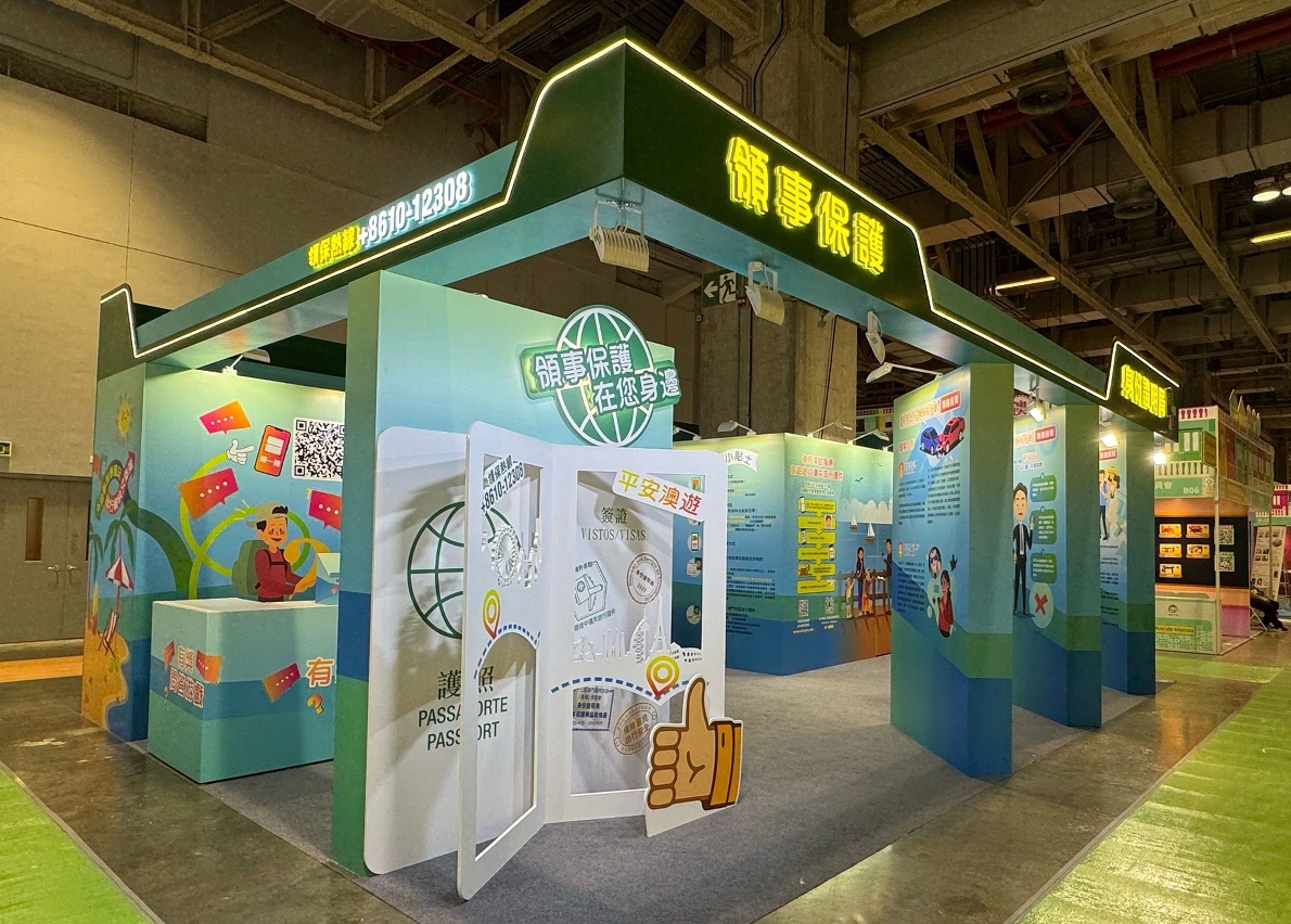 此外,身份證明局與外交公署合辦的展位設於會場B 區,編號 B8,展位包含不同元素,包括有領事保護資訊展覽、大型互動打卡裝置,以及有獎問答遊戲,獎品豐富,歡迎市民參與。