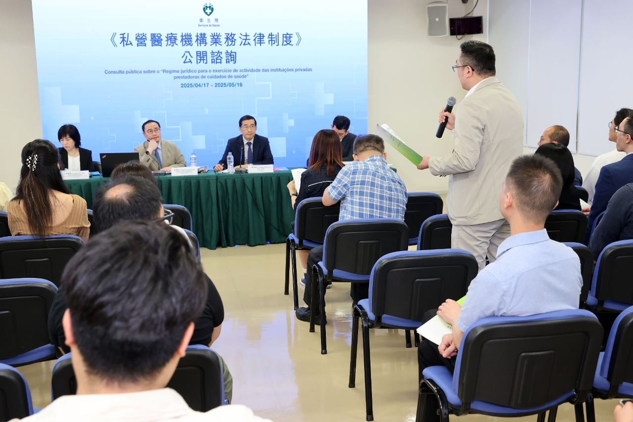 鄭成業副局長及呂綺玲代副局長在諮詢會上發言時表示,特區政府計劃透過完善私營醫療機構發牌制度,增設介乎於醫院和診所之間的日間醫院准照類別,進一步拓展本澳醫療市場的發展空間,為居民、旅客提供多元化和優質的醫療服務選擇,在推動本澳大健康產業發展同時,也能有效地保障公眾健康。彭蓬光醫務主任則詳細介紹《私營醫療機構業務法律制度》諮詢的主要內容,包括牌照制度設計、機構的開設及運作要求、法律規範的醫療服務、處罰制度及過渡安排等。