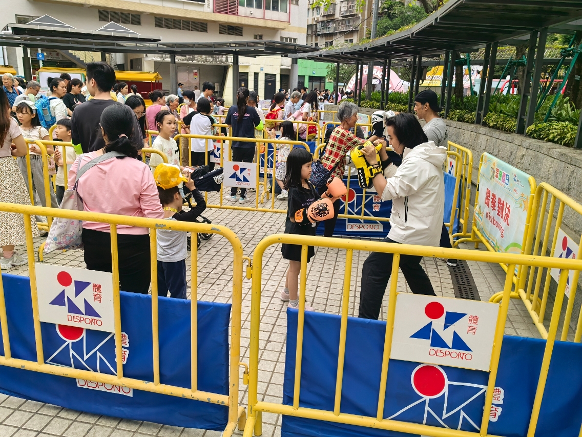 由體育局主辦的“大眾康體日”活動,於4月26日在祐漢街市公園舉行,活動吸引了眾多市民到場參與,當中有不少家長帶同子女前來參與,藉著參與康體活動增進親子關係,同時寓運動於娛樂。場內氣氛溫馨熱鬧,樂也融融。