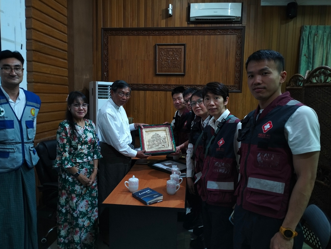 4月30日,在中國駐緬甸大使館的支持與協調下,中國國際應急醫療隊(澳門)的5名隊員,與緬甸衛生部國際合作司、負責災難應對的公共衛生司,在緬甸內比都的衛生部臨時應急指揮中心舉行了工作會議。