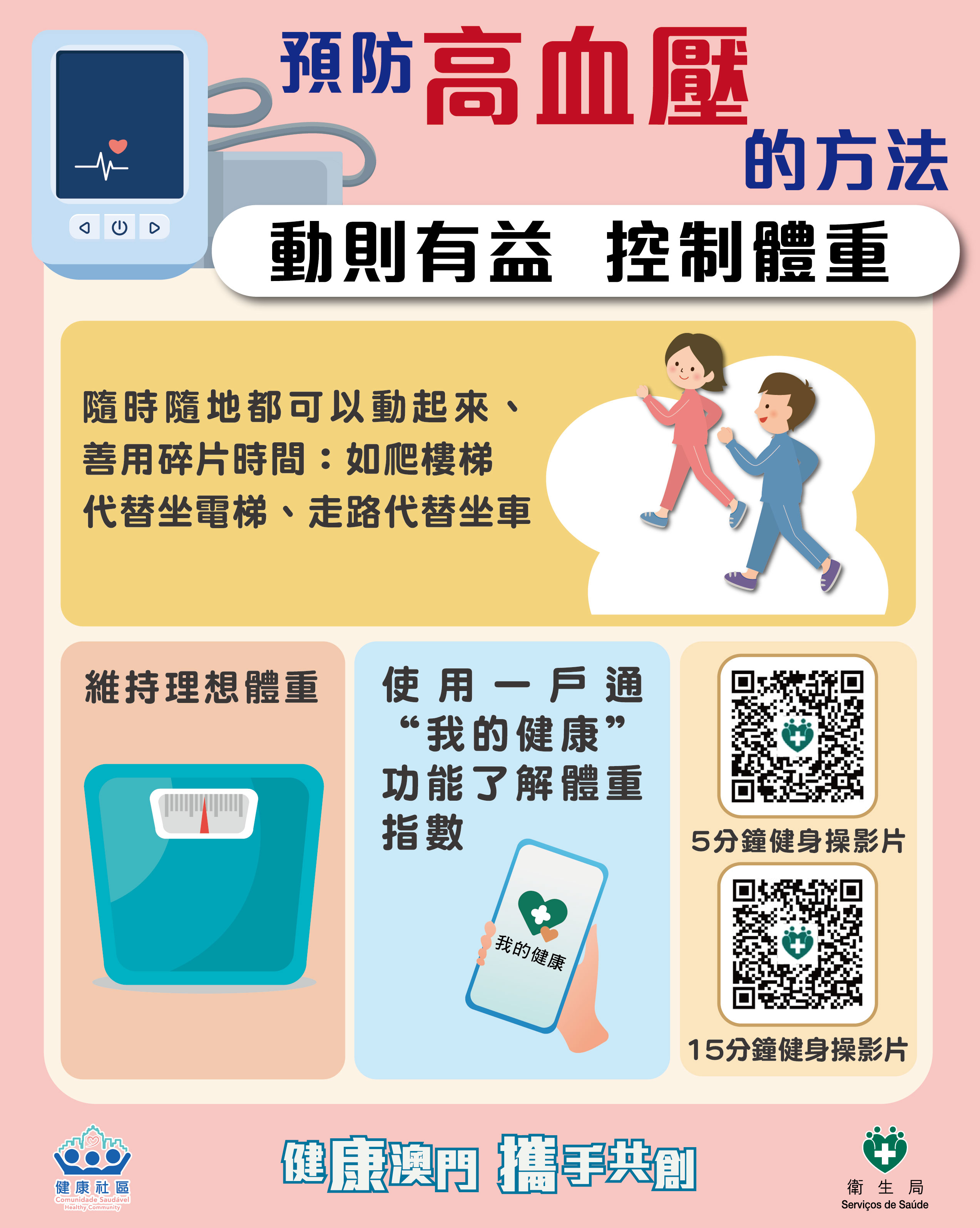 今年“世界高血壓日”期間(5月15至21日),衛生局舉辦社區推廣活動,活動分機構和個人兩個參與層面(詳情參閱“5.17血壓齊齊Check”海報)。2024年該活動吸引逾12,000人次參與,反響熱烈。衛生局表示,將持續優化慢性病防控策略,擴大管理覆蓋面,從源頭推動居民養成健康習慣,共同落實“全生命周期健康保障”的國家戰略目標,與居民攜手共建健康社區和幸福澳門。