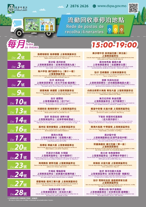 另外,“2025世界環境日系列活動”之“齊熄燈,一小時”將於6月5日晚上八時三十分至九時三十分舉行;“便服夏,齊節能”將於6月1日至8月31日舉行;“知慳惜電—5%節能行動”抽獎活動將於2025年7月至10月舉行。上述活動詳情可查閱環保局網頁(www.dspa.gov.mo)或致電“環保熱線”(2876 2626)查詢。